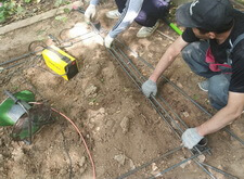 Для начала мы демонтировали уже имеющиеся элементы: снесли бетонный цоколь и изъяли стоящие кресты.