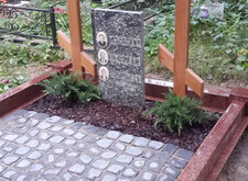 Мы восстанавливаем могилы исходя из любого исходного состояния. Так было и в этот раз. Мы изготовили и установили гранитный цоколь из красного гранита, клиент просил избегать черного цвета. Установили дубовые кресты и восстановили положение памятника, который был на могиле изначально. Посадили два можжевельника и оставили зону для будущих посадок цветов.